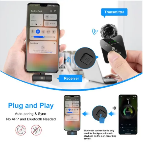 No complicated setup. You simply clip the small transmitter mic to your collar or shirt, plug the receiver into your phone’s Type-C port, and you are ready to record like a professional broadcaster.